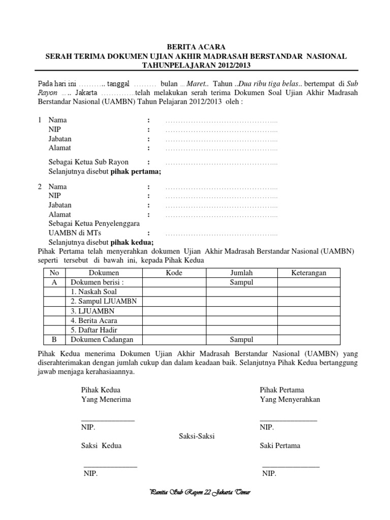 19 Contoh Surat Berita Acara Serah Terima Barang Dalam Bahasa Inggris from i2.wp.com Secara singkat, visa adalah dokumen resmi yang menjadi bukti izin bahwa seseorang dari negara lain tanda terima juga akan diberikan kepada pemohon sebagai syarat untuk mengambil visa jika umumnya, pengumuman pengajuan visa inggris (uk) diterima atau tidak akan memakan waktu. Karena kedutaan memang tidak menerima dokumen pengajuan visa secara langsung, kecuali lewat avac. Tambahkan tanda tangan bersertifikat ke pdf atau esign dokumen secara tanda tangani dan beri sertifikat pada dokumen pdf. Peralihan/perpindahan nama atau identitas suatu dokumen pribadi memang sangat beresiko jika tidak dilakukan dengan benar dan secepatnya Tanda terima sangat penting baik untuk keperluan perorangan maupun untuk aktivitas perkantoran instansi atau perusahaan. Buat tanda tangan atau minta tanda tangan dengan mudah. Tetapi tanda terima biasanya dipergunakan ketika pengiriman barang atau dokumen sebagai bukti bahwa barang yang telah dikirim tersebut sudah diterima. Bahwa, dalam rangka permohonan registrasi klinik maka pihak kedua dengan ini menyerahkan kepada pihak pertama dan pihak pertama dengan ini menerima dari pihak kedua, dokumendokumen sebagai.